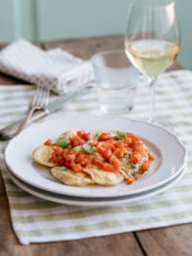 1) Prendi i pomodori, tagliali a metà, elimina i semi e condiscili con il sale. Sistemali su di una gratella per far perdere loro l’acqua vegetale.