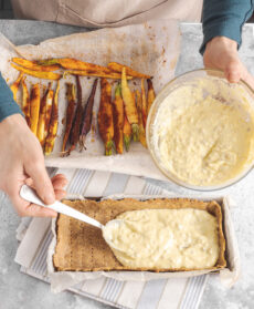 Il guscio di pasta brisée, la farcia al formaggio e le carote al forno sono tutti aromatizzati con il rosmarino, un'erba dal profumo intenso che esalta il gusto gentile degli ingredienti