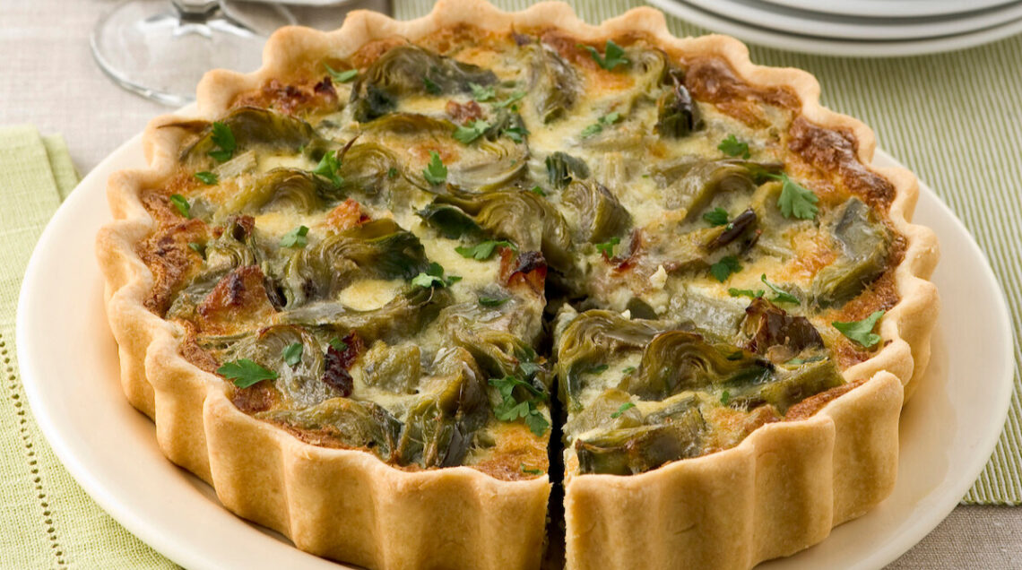 Carciofi e pancetta sono protagonisti di questa delicata torta salata che profuma di limone