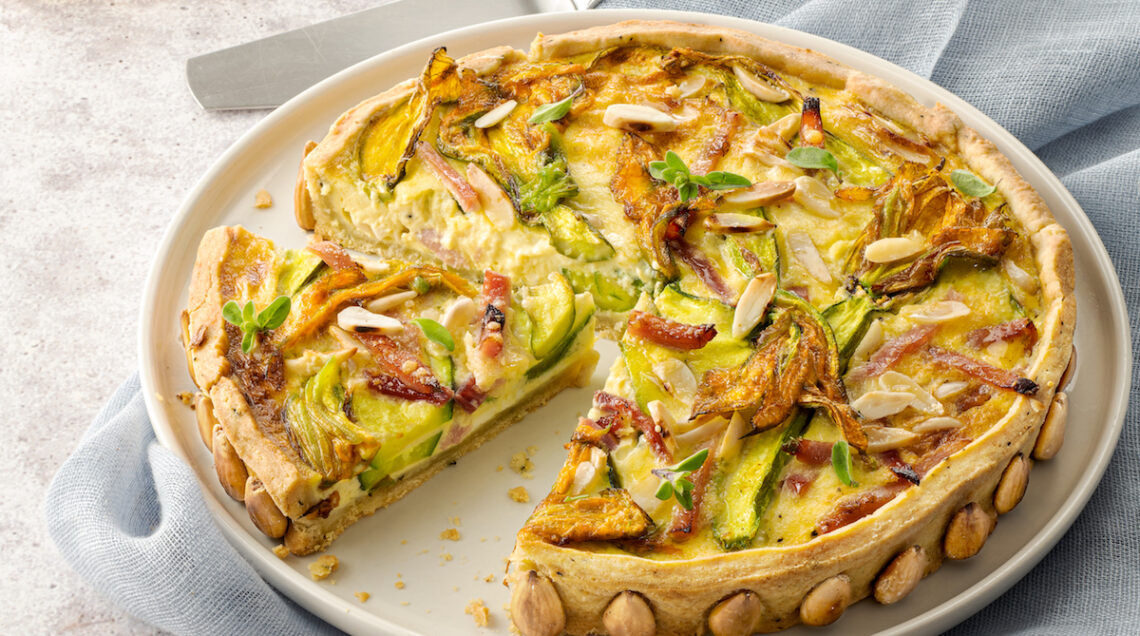 Una ricetta primaverile con prosciutto cotto e salame, zucchinette con fiori e profumo di maggiorana