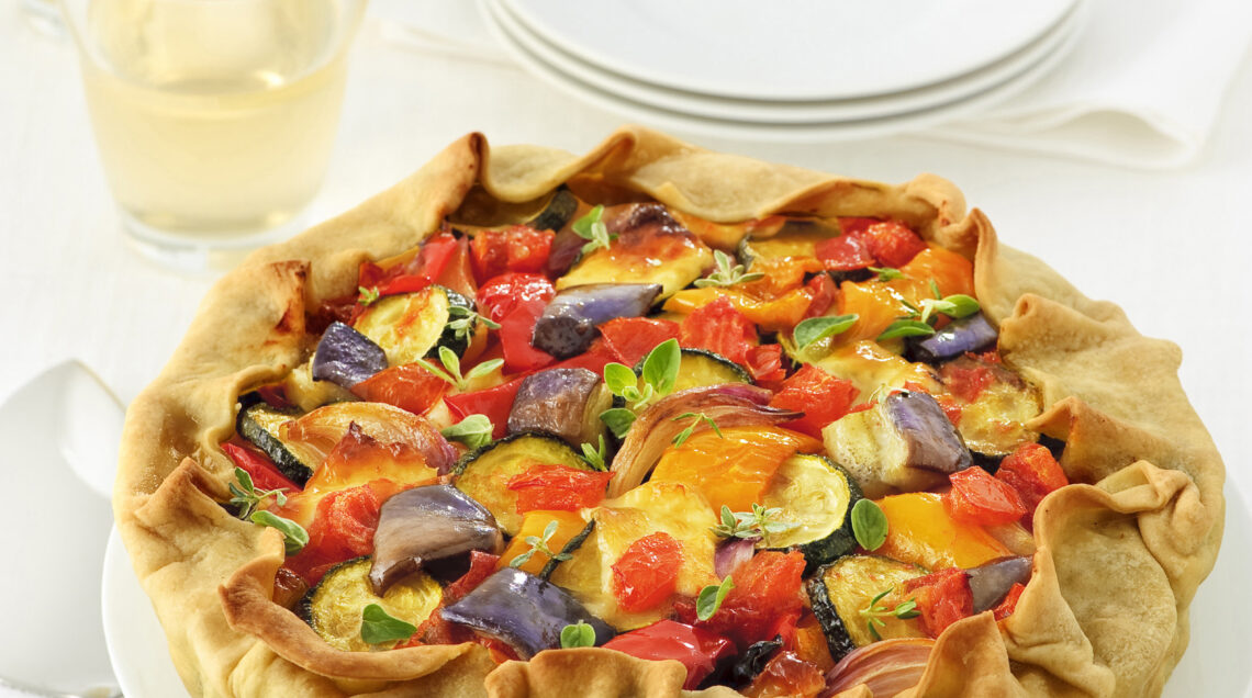 6) Ripiega il bordo di pasta e cuoci la torta salata con ratatouille e primosale nella parte bassa del forno preriscaldato a 180°C per circa 40 minuti.