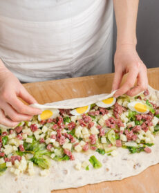 Tipico del periodo pasquale, regala un ripieno ricco di formaggi misti e salame. Pochi rametti di ulivo e diventa un centrotavola perfetto