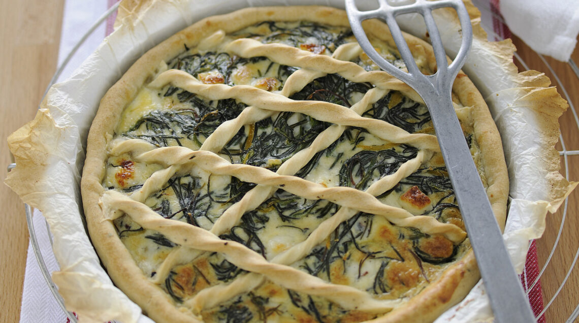 3) Prepara un battuto con uova e panna. Unisci al composto la barba di frate, il formaggio primo sale a pezzettini, il grana grattugiato e una macinata di pepe. Amalgama bene e aggiusta di sale. Quando la pasta frolla è pronta, prelevala dal forno e riempila con il composto. Decora con i ritagli di pasta avanzati e inforna il tortino di barba di frate al limone per 30 minuti a 200°.