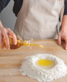 Questa preparazione è fatta con la pasta matta, dalla consistenza simile alla brisée, ma realizzata con più acqua e poco olio al posto del burro, la pasta matta è una base neutra e soprattutto molto leggera, adatta a preparazioni sia dolci sia salate. Con un riposo di soli 30 minuti, è uno degli impasti più facili e veloci. La pasta matta è perfetta per accompagnare i salumi, come il culatello di zibello.