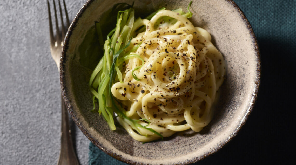 1) Mondate le puntarelle, staccate i germogli, tagliateli a metà e riduceteli a strisicioline sottili. Lavateli e teneteli da parte. Grattugiate il provolone, pestate grossolanamente il pepe e tostatelo in un padellino fino a quando inizia a emettere il suo aroma.