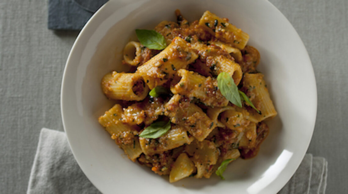 1) Passate al mixer le mandorle con i pomodorini sgocciolati dall'olio di conservazione. Aggiungete la 'nduja privata delle pelle (se vi piace, potete aumentare un poco la quantità , fino a circa 40 g). Aggiungete anche una manciata di foglie di basilico e l'olio. Azionate il mixer ancora qualche istante, poi trasferite il pesto in una capace terrina.