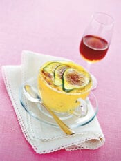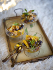 Bicchierini di burrata con anguria, melone e pinoli tostati