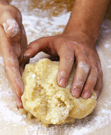 Trasferitelo sulla spianatoia o su un piano di marmo cosparso di zucchero a velo e lavoratelo con le mani fino a renderlo omogeneo e compatto.