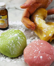Se volete ottenere panetti di diversi colori, dividete il marzapane in diverse parti, unite a ciascuna poche gocce di colorante alimentare di tinta diversa e impastate fino a ottenere un colore omogeneo.