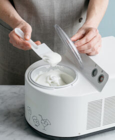 Preparate lo yogurt gelato con la gelatiera: mescolate gli ingredienti e versate il composto preparato nella gelatiera, poi azionatela come indicato.