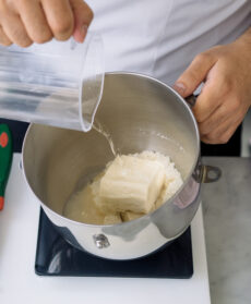 Versatevi sopra 100 ml di acqua. Mettete in funzione l'apparecchio per 3-4 minuti, fino a ottenere una pasta omogenea.