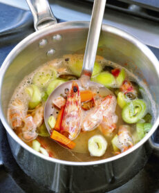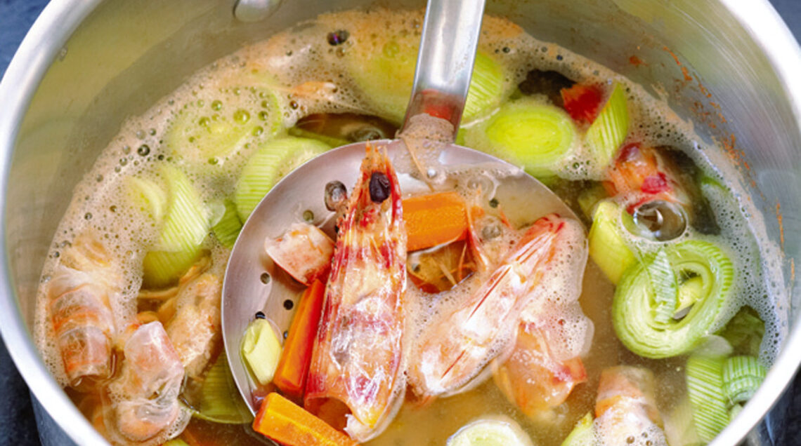 Si prepara con scarti di pesci e crostacei questo brodo di mare saporito e versatile, che diventa base per minestre e zuppe, risotti e intingoli