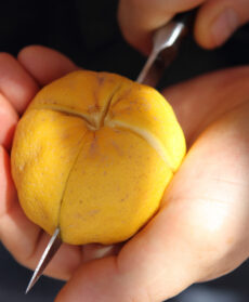 Lavate i limoni e incideteli a croce senza separare completamente gli spicchi.