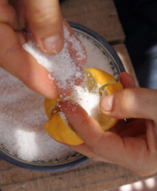 Introducete in ogni limone un cucchiaino colmo di sale grosso.