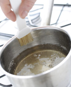 Solitamente è preferibile scegliere lo zucchero semolato, privo di qualsiasi impurità, diversamente per esempio dallo zucchero di canna, che potrebbe alterare e rovinare il risultato finale. La nostra ricetta a prova di principiante propone l'aggiunta di qualche goccia di succo di limone, ma se volete usare solo acqua e zucchero la proporzione e di 1 parte di acqua e due parti di zucchero.