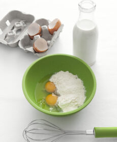 Uova, farina, latte diventano una fluida pastella. Dopo un breve riposo, la cottura veloce regala crespelle sottili e morbidissime