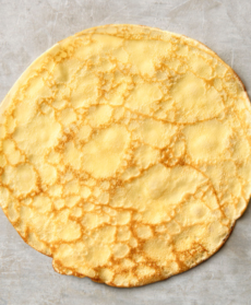 Cuocete a fuoco medio alto finché i bordi iniziano ad arricciarsi. Girate la crespella con l'aiuto di una paletta e portate a cottura.