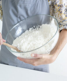 Mettete 2 kg di sale grosso in una ciotola con 2 albumi. A piacere, potete unire spezie, scorze grattugiate di agrumi, aglio ed erbe aromatiche tritati.