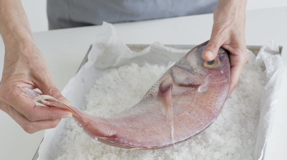 Dietetica e scenografica, la cottura al sale è una tecnica perfetta per il pesce. Il sale, solidificandosi con il calore del forno, trattiene aromi e succhi delle pietanze, che restano morbide e saporite senza aggiunta di grassi. l principio, infatti, è per certi versi analogo alla cottura al cartoccio perché la crosta, oltre a concentrare i sentori, protegge la polpa dalle temperature eccessive. Le tipologie di pesce adatto sono quelle a carne bianca come branzino, orata, dentice, pagello o pezzogna.