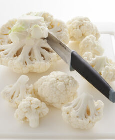 Pulite il cavolfiore, dividetelo in cimette, lavatelo e mettetelo in una pentola con il riso Originario o Roma. Aggiungete 1 litro di acqua e cuocete per 20-25 minuti dal momento dell'ebollizione, o finché il riso sarà cotto e i cavolfiori tenderanno a disfarsi. Unite il dado granulare vegetale, mescolate e spegnete.