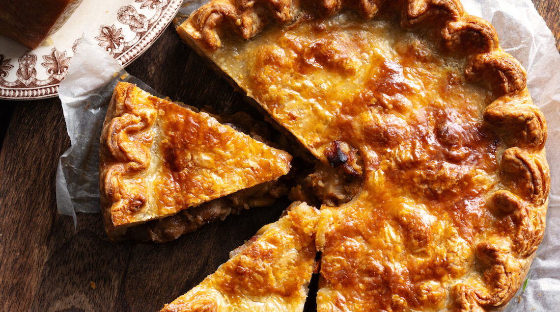 Una torta salata tradizionale della Gran Bretagna, preparata con maiale, lardo e Cheddar forte, Insaporita con la senape, profuma di sidro