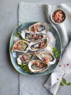 Ostriche alle mandorle, scalogni e zenzero