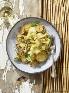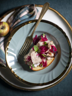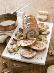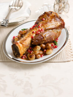 Arrosto di salmone e nasello all’arancia con cavolini alla melagrana