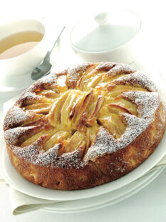 Torta al cioccolato e cannella con pere sciroppate