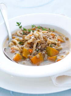 Minestra di gramigna e zucca al timo