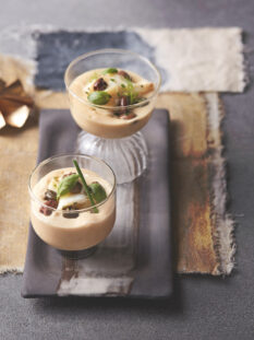 Insalata di stoccafisso su crema di patate nel bicchiere