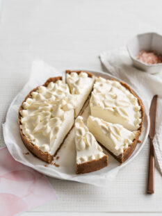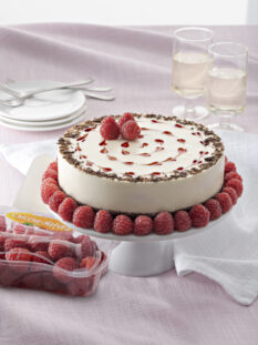 Cheesecake al cioccolato bianco, con coulis di fragole e pepe rosa