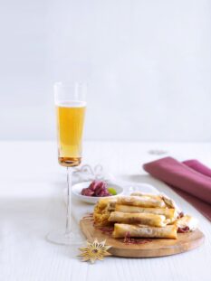 Cannoli croccanti con gorgonzola di capra e composta di cipolle rosse