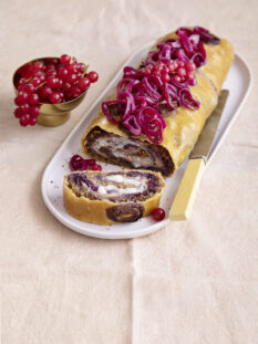 Strudel di cipolle rosse, Asiago e prosciutto di Praga
