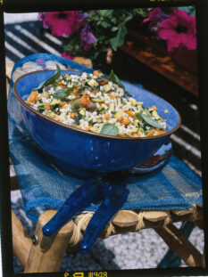 Pappardelle alle erbe e fiori con piselli e ricotta