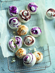 Meringhe variegate ai lamponi, cioccolato e caramello