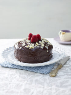 Torta al cioccolato con grano saraceno e confettura di lamponi