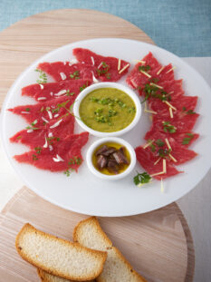 Schüttelbrot con speck, formaggio e gelatina di mele