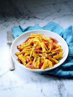 Ramen con bocconcini di copertina di spalla, pak-choi e noodles