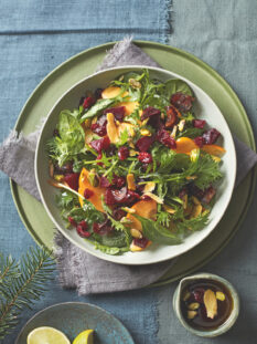 Mizuna con frutta, ortaggi e salsa allo zenzero