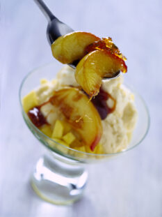Lo zabaione con pesche caramellate