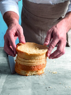 Cake farcito con panna, confettura di ribes rossi e cioccolato