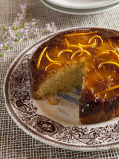 Torta di mais con arance caramellate