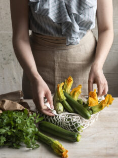 Risotto con funghi porcini e mirtilli in fiore di zucca