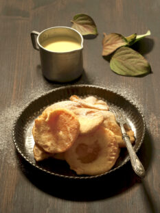 Frittelle di mele con pastella profumata all’alloro, rosmarino e limone
