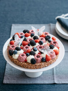 Torta con mousse cremosa allo yogurt e frutti di bosco