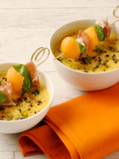 Gazpacho di pomodori in giallo con cracker di quinoa