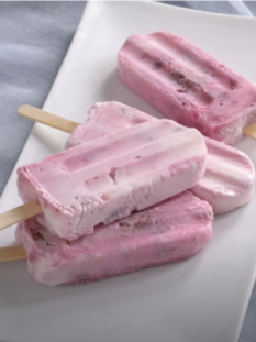 Ghiaccioli di yogurt greco, lamponi e fragoline di bosco
