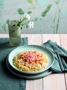 Risotto alla gricia con tartare di gamberi