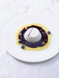 Panna cotta vegana con salsa all’arancia e mirtilli