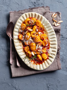 Arrosto di vitello, pancetta e mandorle con salsa al caffè